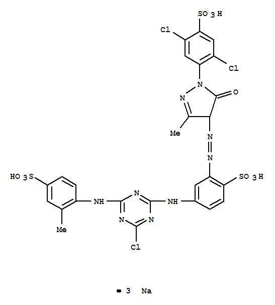 - Chemical Name: trisodium 4-[[4-chloro-6-[(2-methyl-4-sulphonatophenyl)amino]-1,3,5-triazin-2-yl]amino]-2-[[1-(2,5-dichloro-4-sulphonatophenyl)-4,5-dihydro-3-methyl-5-oxo-1H-pyrazol-4-yl]azo]benzenesulphonate